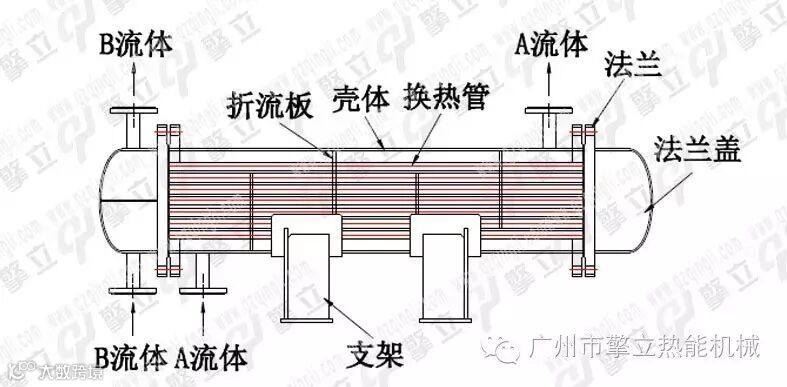 ☆另一种工质由壳体一端的进口接管进入壳体内并均匀地分布于传热管外,其流动状态可根据工艺要求在管束中设置不同型式和数量的折流板。