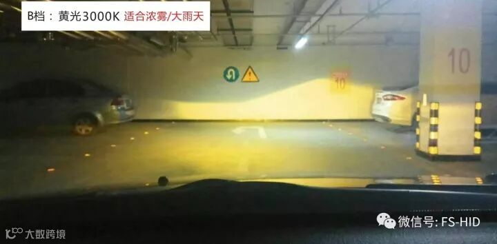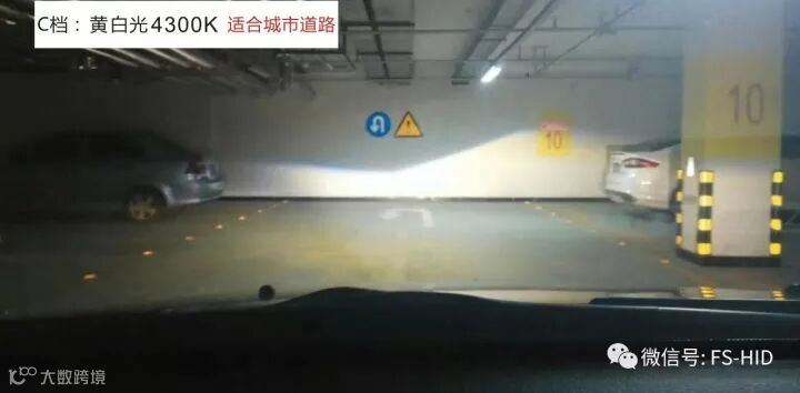 第3档,黄白光4300K,适合一般雨雾天,城市道路上使用(如遇到交警查是否有改车灯,换C档位,车灯的颜色与卤素灯接近,不易被查觉)。