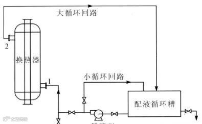 (3)隔离阀和交换器之间装球阀,接上输送泵和导管,清洗剂从换热器的底部泵入,从顶部流出。