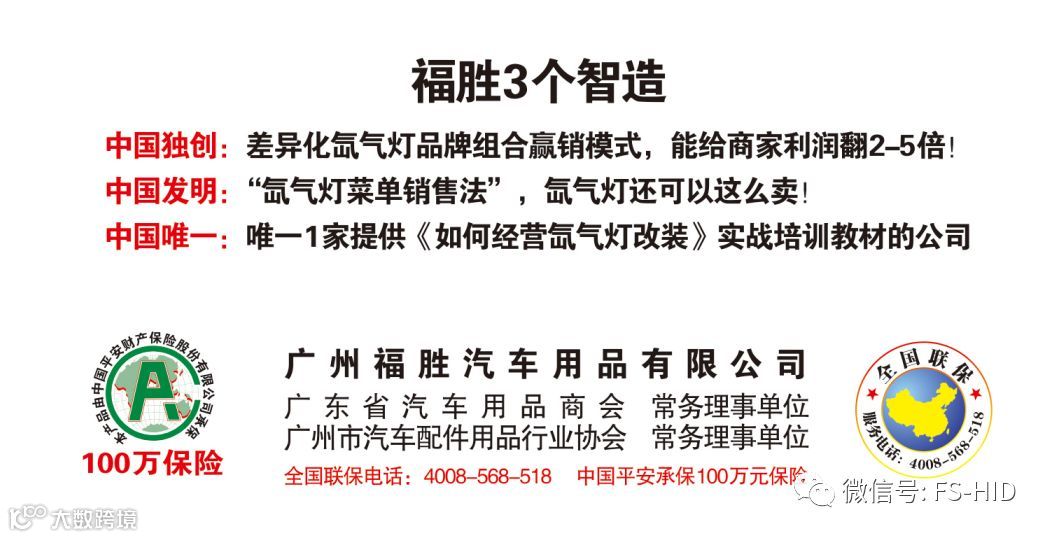 福胜氙气灯/LED大灯欢迎您!福胜公司荣获“氙气灯行业著名品牌”,“氙气灯行业诚信品牌“,广东省汽车用品商会"推荐优秀品牌",广州市汽车配件用品行业协会“广协优品入选企业”,中国平安承保100万元产品责任保险,全国联保服务!