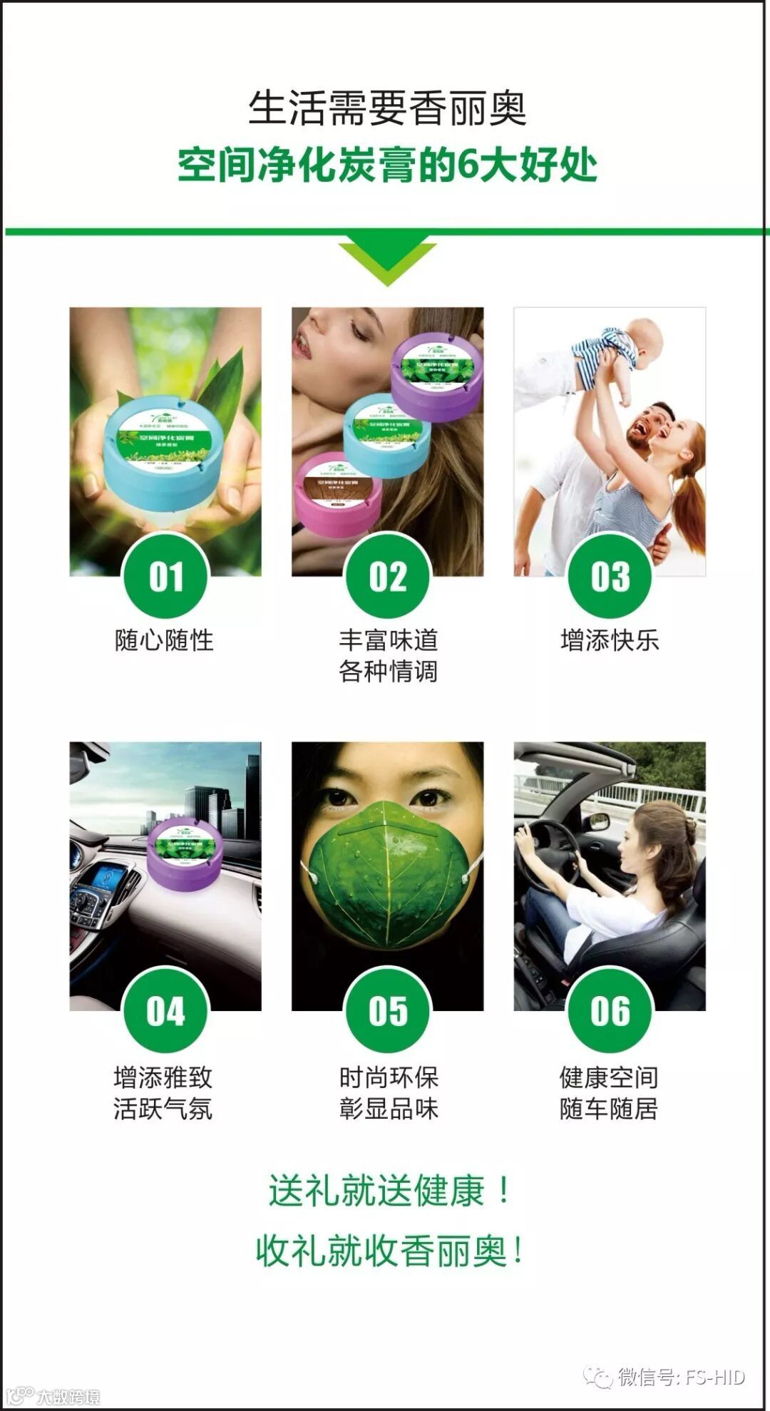 香丽奥——空间净化活性炭膏,属于汽车精品类,装饰类,消费品类,空气净化,香水类等多类产品的应用集合,因此销售范围非常广!