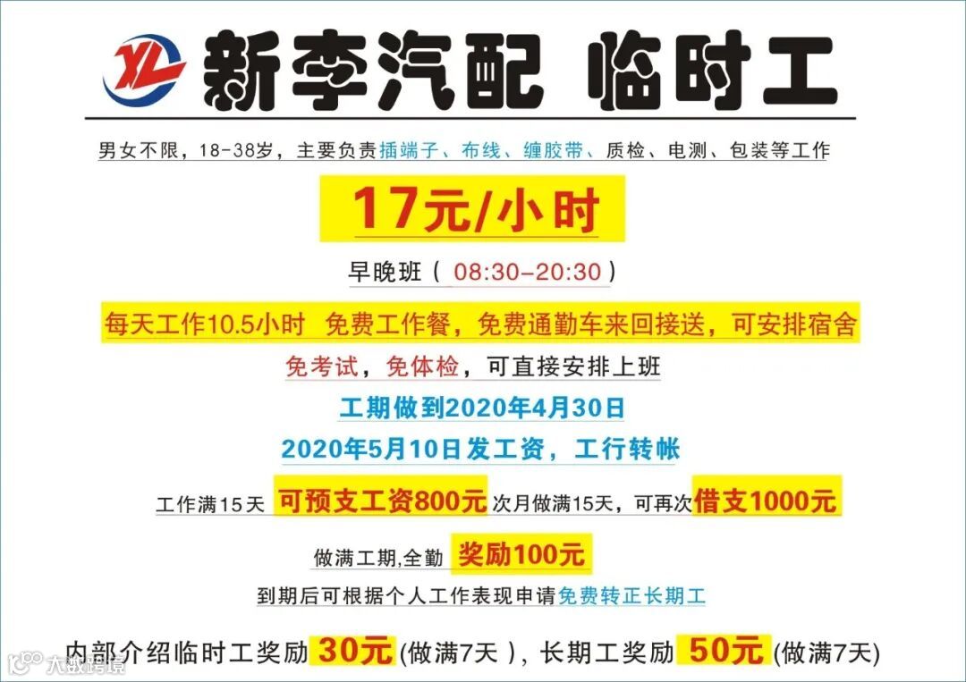 内部介绍:临时工奖励30元(做满7天),长期工奖励50元(做满7天),次月 15号前发放,内部介绍名额:60人,截止时间:3月12日 前。