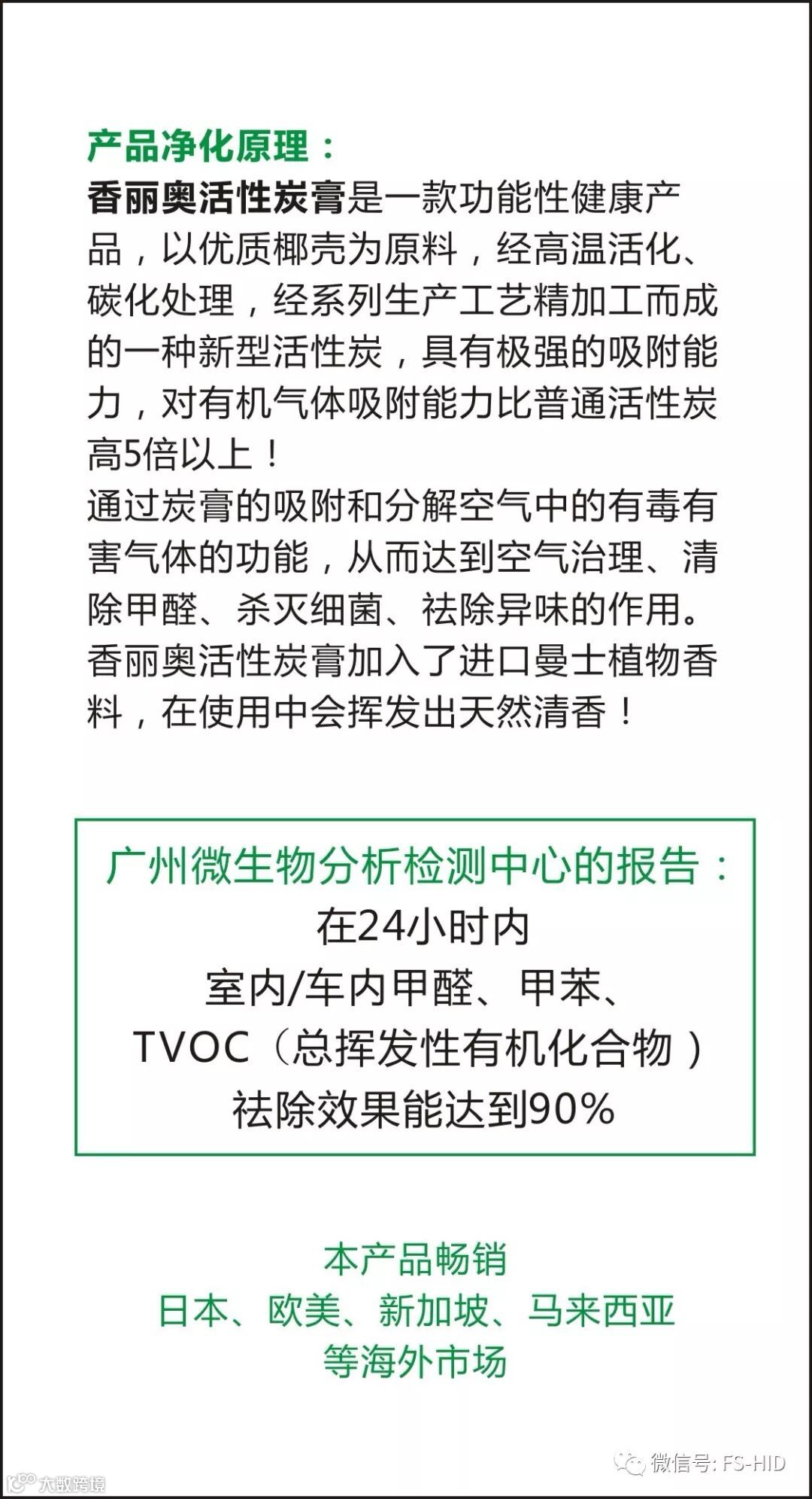 香丽奥——空间净化活性炭膏,属于汽车精品类,装饰类,消费品类,空气净化,香水类等多类产品的应用集合,因此销售范围非常广!
