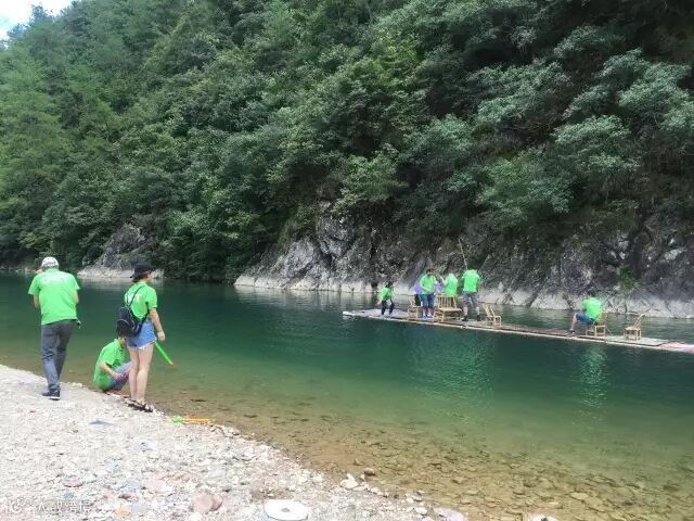 全体员工放松心情、游泳戏水、乘坐竹筏、制作手工麻糍、玩的不亦乐乎!