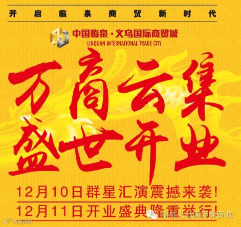 12月11日上午,在万众期待中,即将迎来中国临泉·义乌商贸城盛大开业的时刻。