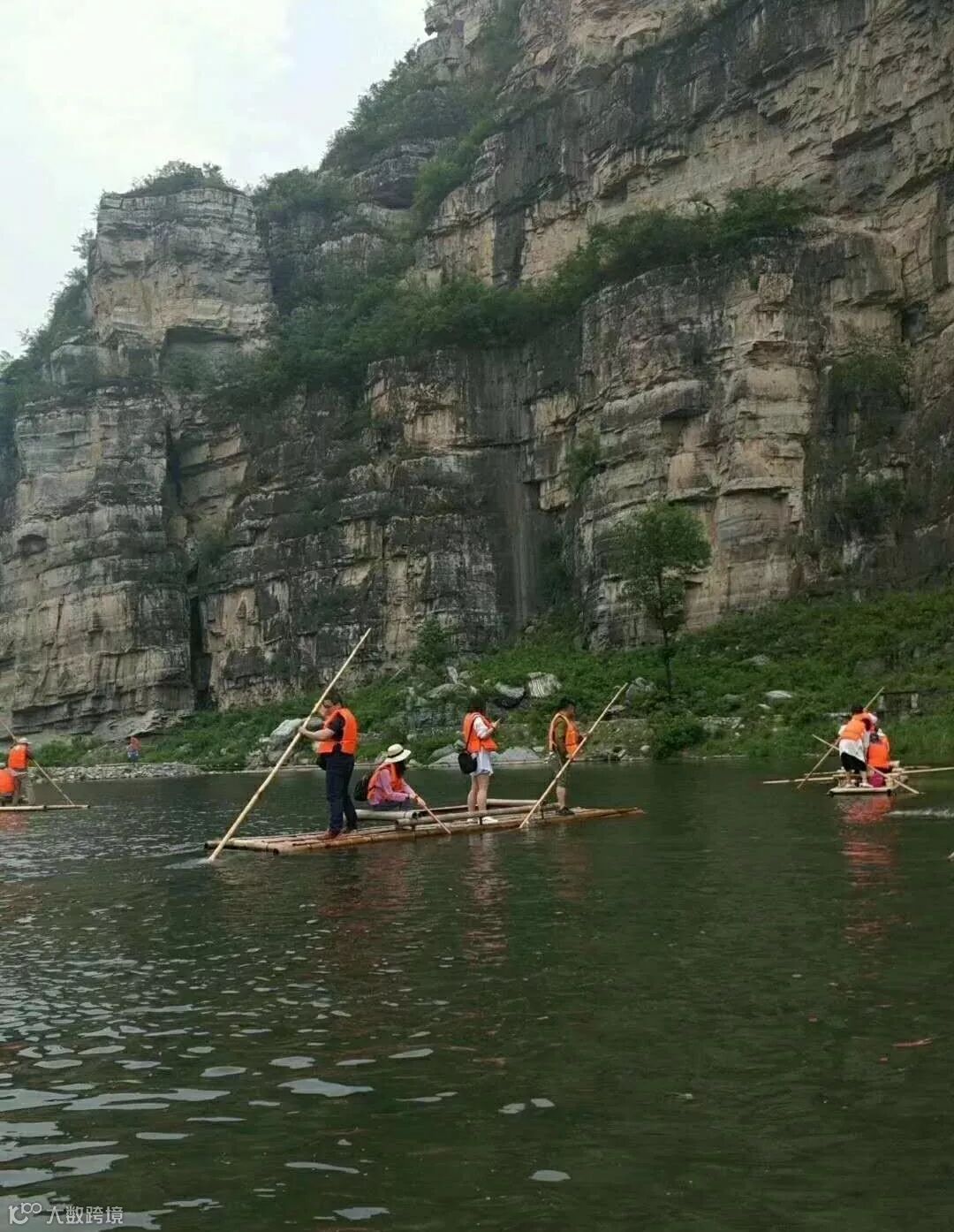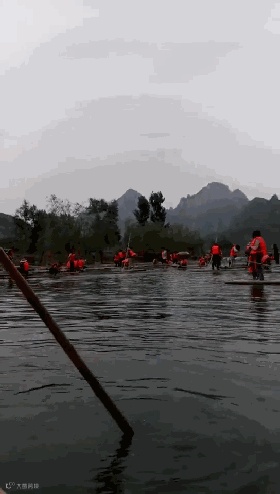 首先开始划竹筏