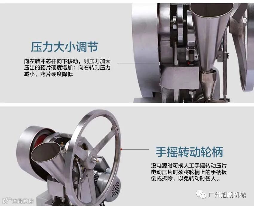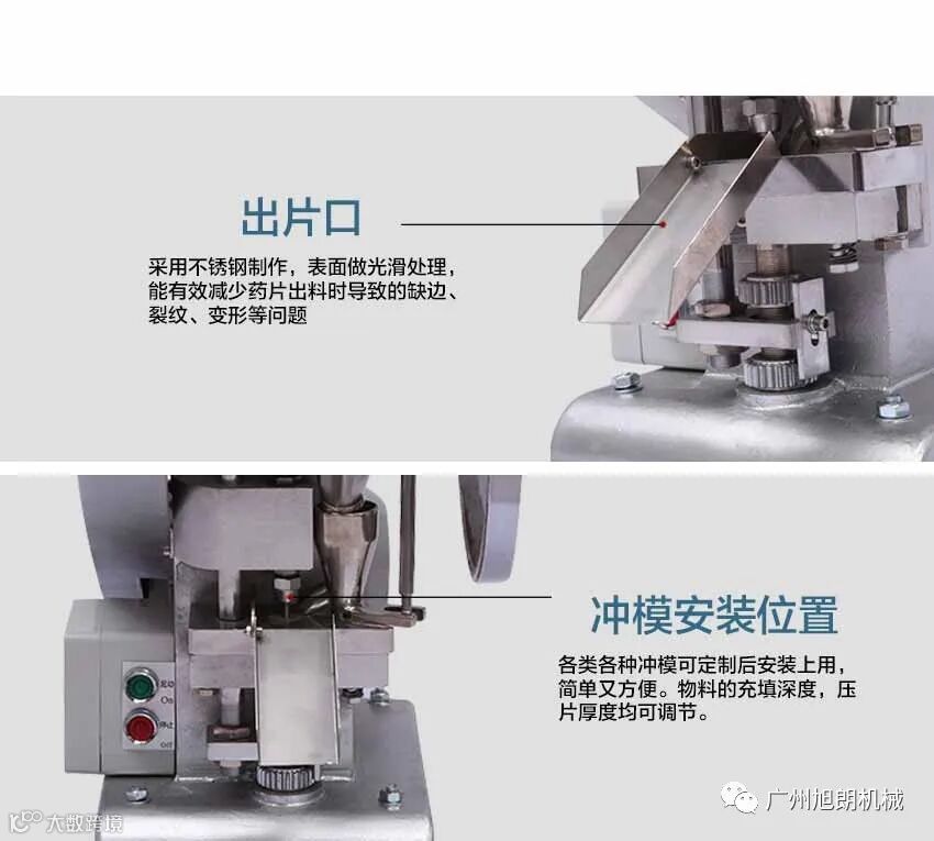单冲压片机可广泛适用于制药厂、化工厂、食品厂、医院、科研单位、实验室试制和小批量生产。本机型性能优良,适应性强,使用方便,易于维修,体积小、重量轻,无电时也可手摇压片,常常用于压制各种中、西药片剂。
