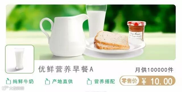鲜牛奶+谷物+鸡蛋+肉类+新鲜果蔬
