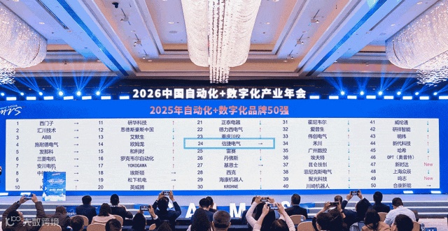 蝉联中国自动化及数字化品牌50强,位列第24位