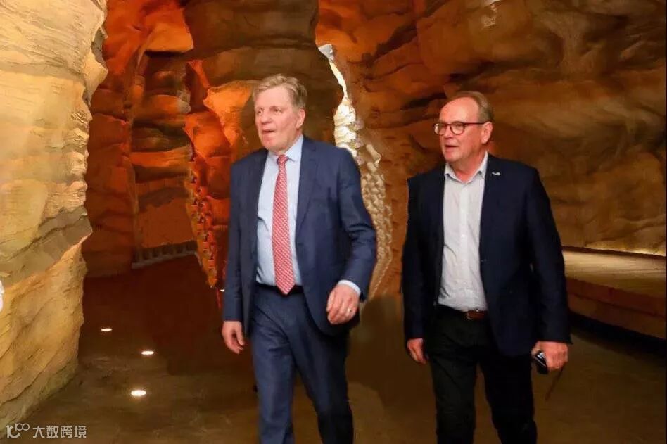 △在溶洞内,芬兰前总理埃斯科·阿霍先生(左)感受到美国羚羊谷般的自然奇迹。