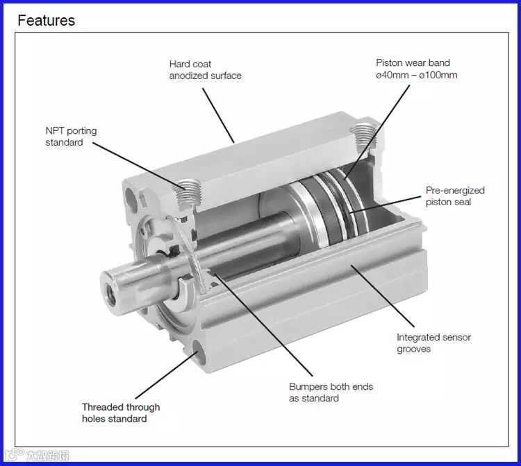The P1Q series has 10 bore sizes and standard stroke ranges from