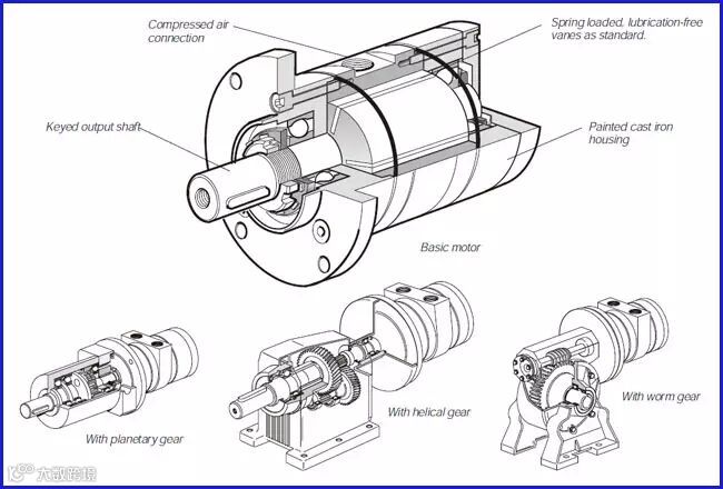 running characteristics. They are also equipped with vanes for intermittent lube-free operation as standard. 100% struction of the motors makes