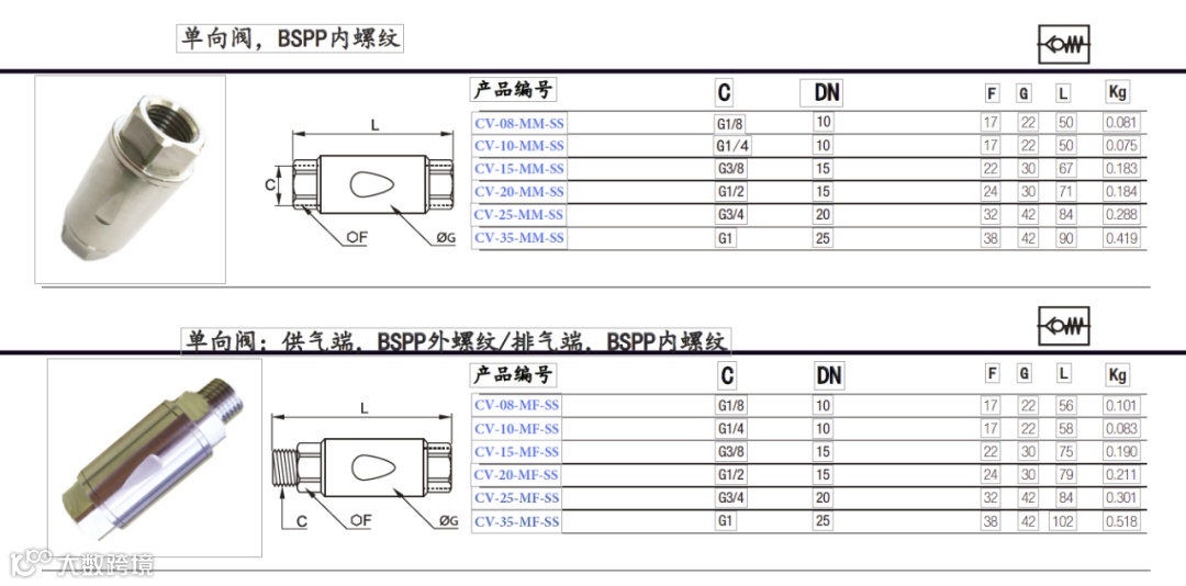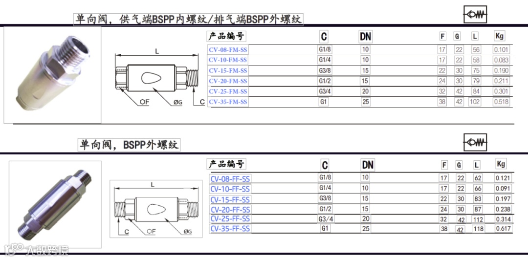 广州市斯玛特工业自动化设备有限公司CV单向阀(不锈钢)