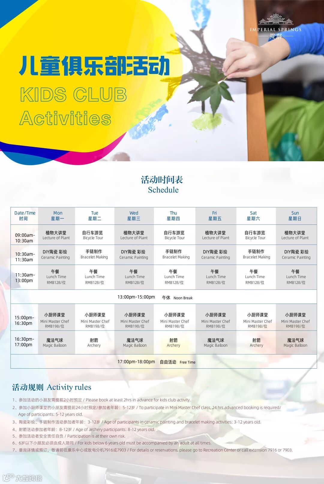 *参加儿童俱乐部活动(详见上述时间安排表)