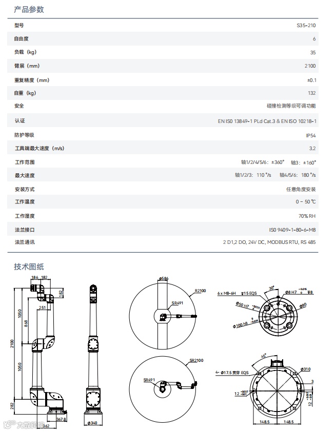 采用轻量化设计理念,自重132kg,对比传统工业机器人减重50%以上,占用空间小,无需护栏即可实现人机协作,更易部署,生产线优化更便捷。
