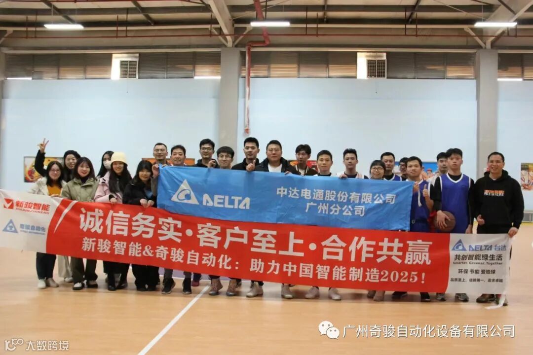 2023年12月23日下午,广州奇骏自动化设备有限公司与中达电通股份有限公司的友谊篮球赛在广州黄埔区热力开启。此次篮球赛的主题是“携手并进,共创辉煌”,旨在通过体育竞技的方式,增进两家公司之间的友谊,同时也展现了两家公司员工的团队精神和活力!
