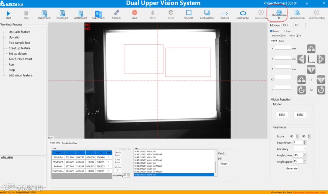 自研视觉:采用台达自研视觉库DMV-Lib,无需额外安装视觉软件,支持视觉工具灵活切换,产品识别稳定、定位精准;