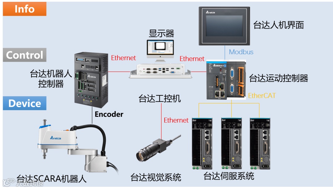 提供视觉、机器人、PLC、伺服系统等整套硬件产品,以及一体化整合应用软件。