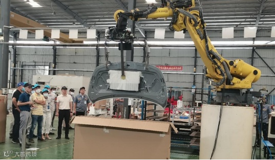 ▲机器人根据3D引导坐标稳定抓起四门两盖