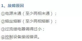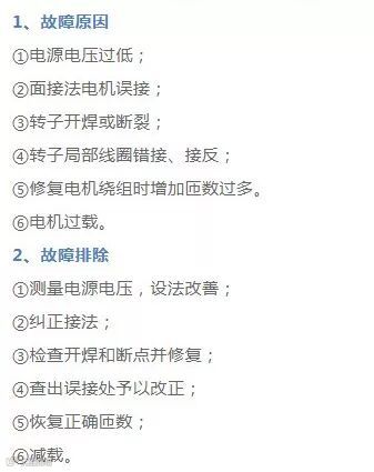 ①转子绕组有断路(一相断线)或电源一相失电;