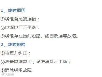 ②绕组引出线始末端接错或绕组内部接反;