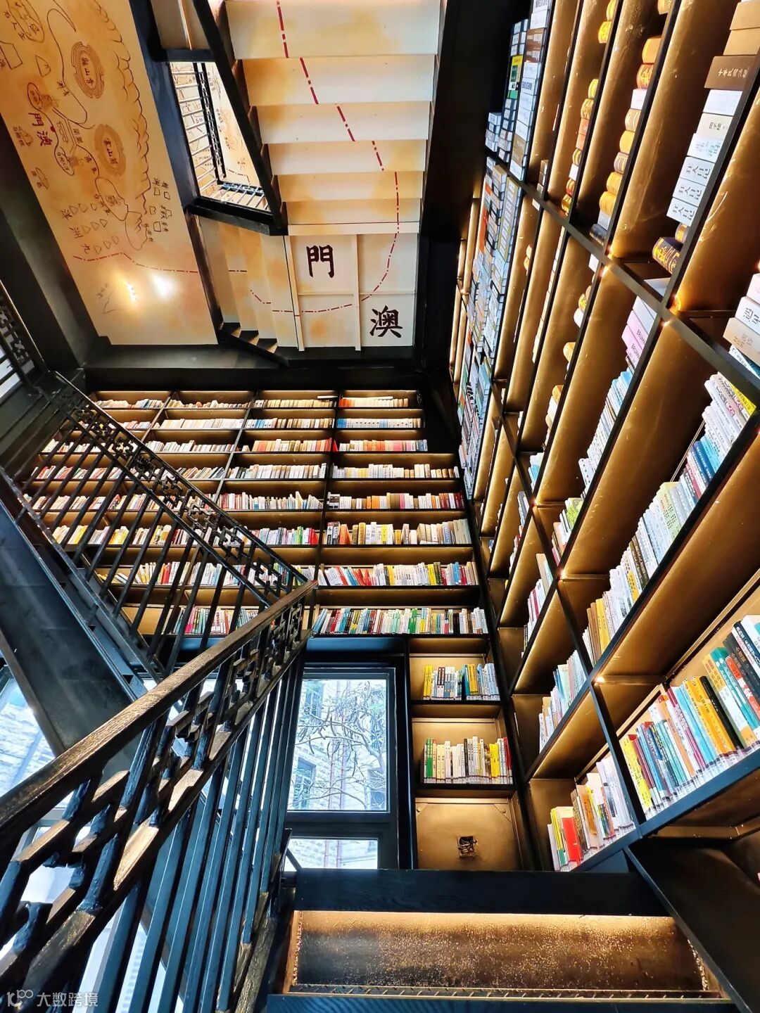 沿着铁质黑色旋转楼梯盘旋而上,抬头可见塔顶描绘着梵高的《The Starry Night》(星空),可感受历史的厚重与神秘感;