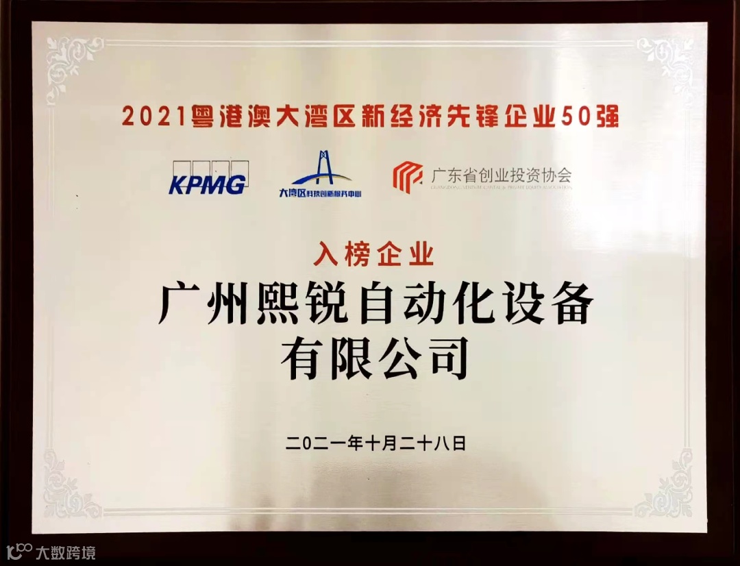 10月28日,“2021粤港澳大湾区新经济先锋企业50强”评选活动颁奖典礼在广东股权交易中心成功举办!经行业专家、行业龙头企业、科研领域专家、产业投资人及知名投资机构等组成的“最强评委会”为期半年的多方位评选,广州熙锐自动化设备有限公司成功入选50强!