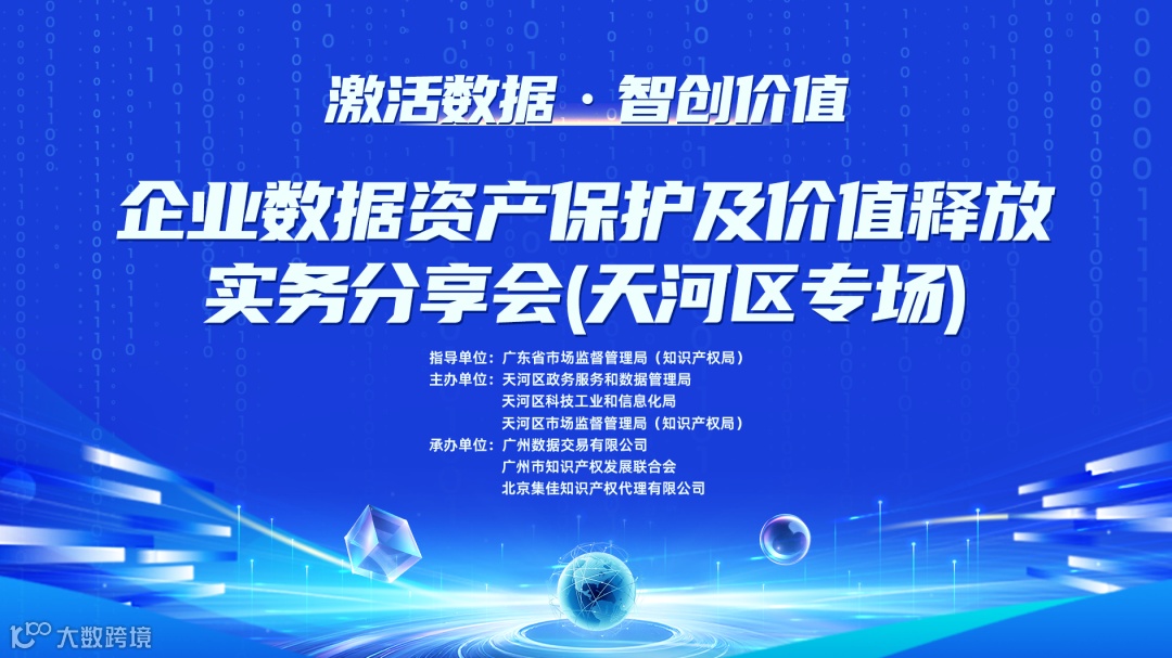 11月11日下午,“激活数据・智创价值企业数据资产保护及价值释放实务分享会天河专场活动”在广州交易集团会议大厅成功举办,本活动由广东省市场监督管理局(知识产权局)指导,天河区政务服务和数据管理局、天河区科技工业和信息化局、天河区市场监督管理局(知识产权局)联合主办,广州数据交易有限公司、广州市知识产权发展联合会、北京集佳知识产权代理有限公司共同承办。活动吸引了近百名政企代表、行业专家到场参与,共同聚焦数据要素市场化配置改革核心议题。