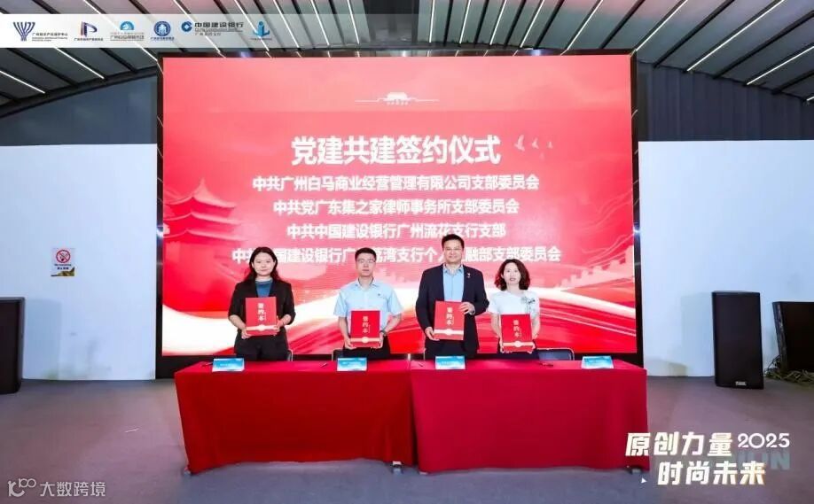 值得一提的是,活动现场还举行了党建结对共建协议书签署仪式。中共广州白马商业经营管理有限公司支部委员会、中共广东集之家律师事务所支部委员会、中共中国建设银行广州流花支行支部、中共中国建设银行广州荔湾支行个人金融部支部委员会共同签署协议。未来,各方将以“党建红”引领“创新蓝”,充分发挥党员在创新保护和维权攻坚中的先锋模范作用,通过组织共建、资源共享、难题共解,为纺织服装行业知识产权保护树立新的典范。
