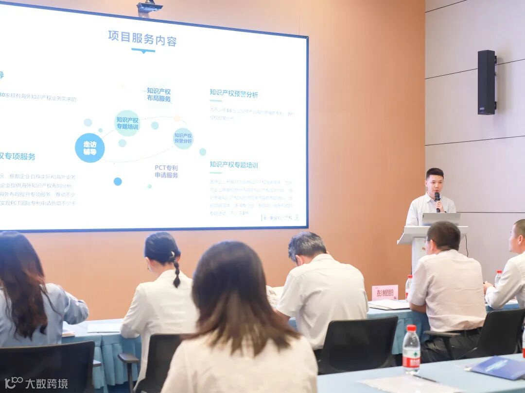 北京集佳知识产权代理有限公司广州分公司综合事业部副经理黄俊文现场介绍了项目的具体情况及实施环节,项目重点围绕企业走访、知识产权海外布局服务(PCT申请)、海外知识产权预警分析等重点工作,为广州开发区内出口型企业提供辅导,提升出海企业知识产权专利海外布局及风险应对能力。