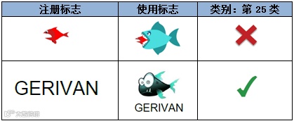 一般而言,当增加的要素为显著要素,与已注册标志相互作用,而使已注册标志不具有独立性时,则视为显著要素变更,不能视为注册标志的使用,如以下示例中,虽然均增加了大鱼图形的设计,但对第一组而言,形成了“大鱼吃小鱼”的新的标识含义,因而改变了原标志的显著特征: