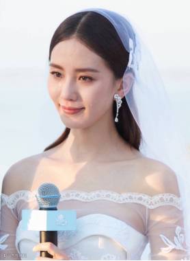 婚礼上的诗诗,美到不可方物。她身着Carven定制的婚纱,50年代的风格,不常见的古典款式,长袖一字领A字裙,跟诗诗那种恬静典雅的气质很相配。据说,Carven的20工匠花了500小时才完成这件典雅精致的婚纱,一件婚纱就价值300万!!!