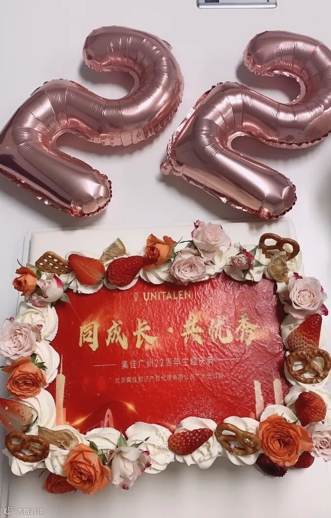 2022年4月20日,春和景明,生机盎然,北京集佳知识产权代理有限公司广州分公司(以下简称“集佳广州”)以“同成长,共优秀”为主题的二十二周年庆活动圆满举行。公司全体员工欢聚420为公司送上真挚祝福,共同见证并分享了集佳广州二十二岁生日的喜悦与精彩。
