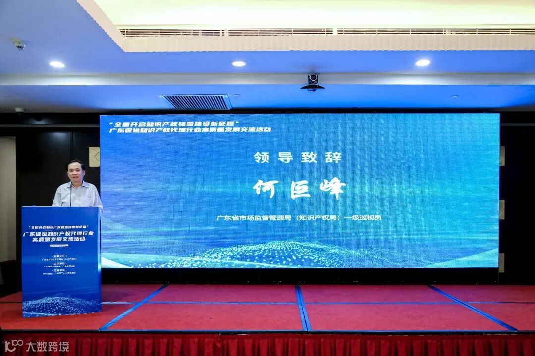 广东省市场监督管理局(知识产权局)一级巡视员何巨峰受邀出席活动并上台致辞,提出相关协会、知识产权机构需深入贯彻落实《知识产权强国建设纲要(2021-2035年)》《“十四五”国家知识产权保护和运用规划》《广东省知识产权保护和运用“十四五”规划》相关决策部署,不断优化我省专利代理行业发展环境,提升行业服务能力和服务质量,发挥知识产权代理工作在知识产权强国建设中的“桥梁”作用,使广东省知识产权代理行业在“十四五”期间得到高质量发展。