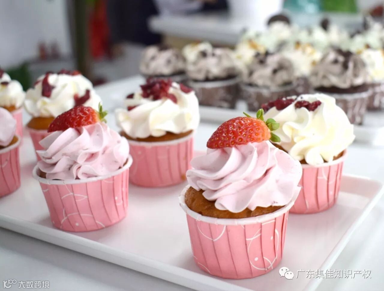 开业仪式结束后,公司同事们围在公司休息区,分享了香槟和糕点水果。