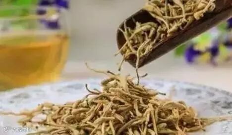 37、金银花有疏散风湿功效,金银花水煎取汁凉后与蜂蜜冲调可解暑;
