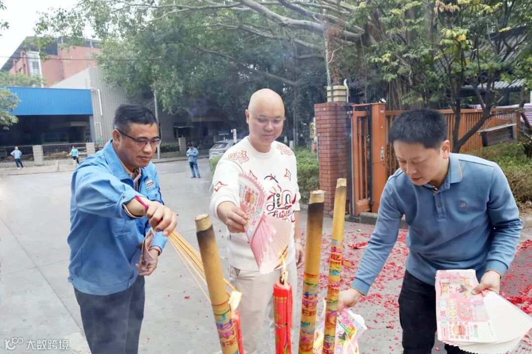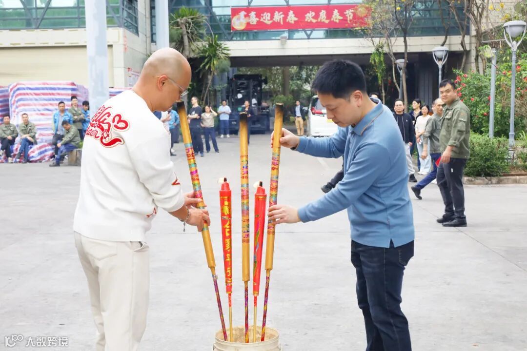 开工仪式现场,谭总带领公司骨干领导装香祈福、放鞭炮纳祥,随着一声铿锵有力的开工大吉,全场欢呼沸腾、士气高涨。