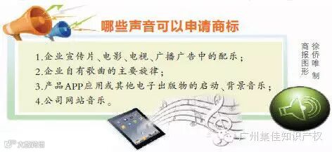 国家工商总局介绍,声音商标是指由能够区别商品或服务来源的声音构成的商标。声音商标可以由音乐性质的声音构成,比如一支乐曲;可以由非音乐性质的声音构成,比如自然界的声音、人或动物的声音;也可以由音乐性质与非音乐性质兼有的声音构成。