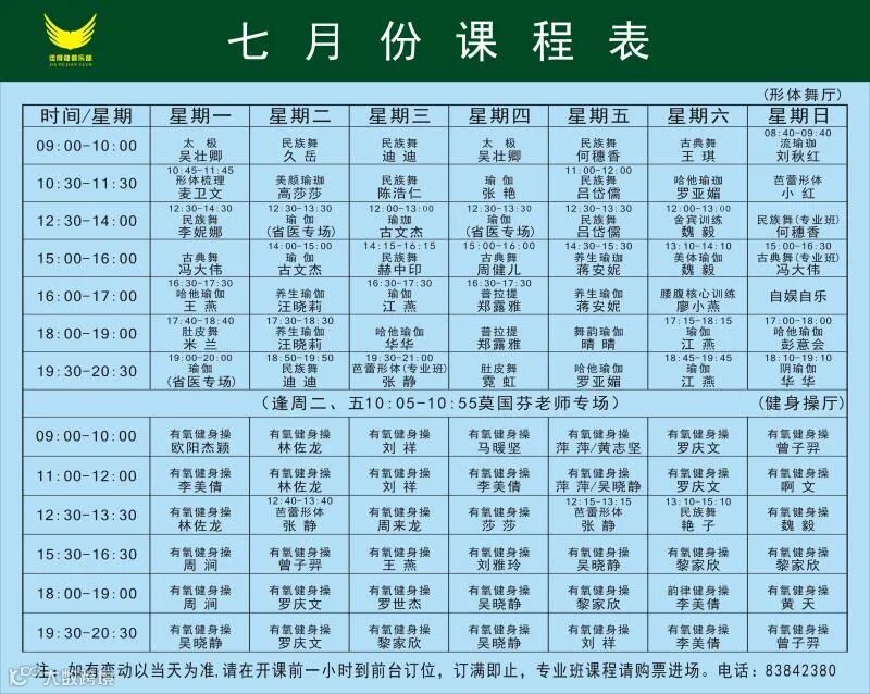 七月课程表