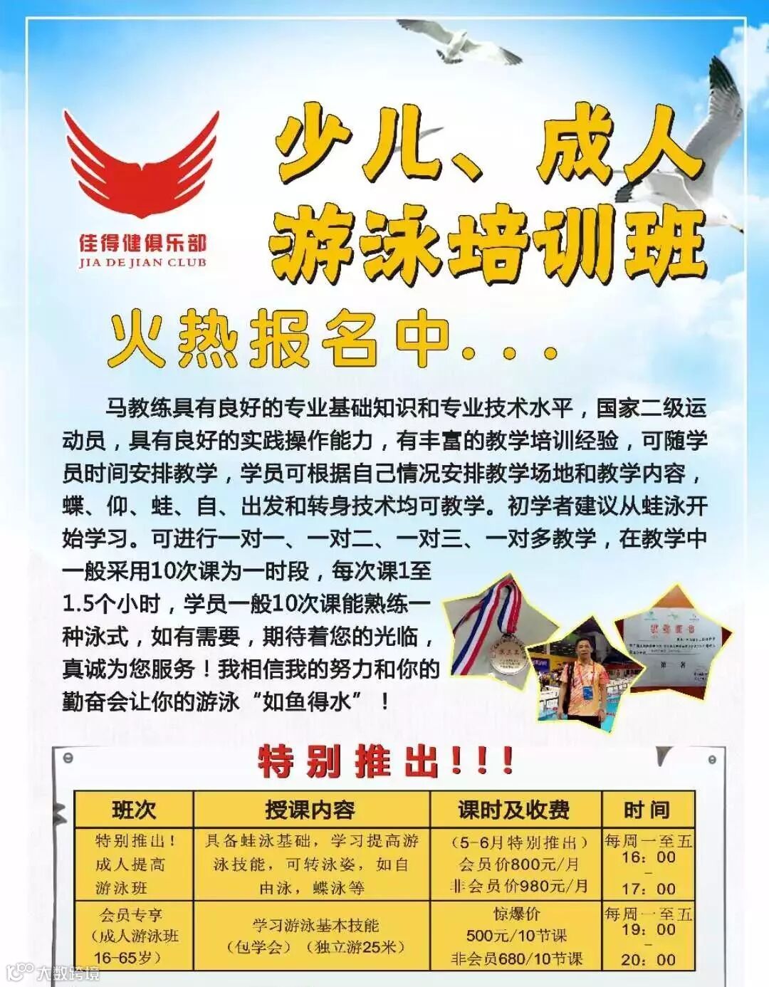 成人游泳班同步火热招生 广州佳得健健身有限公司