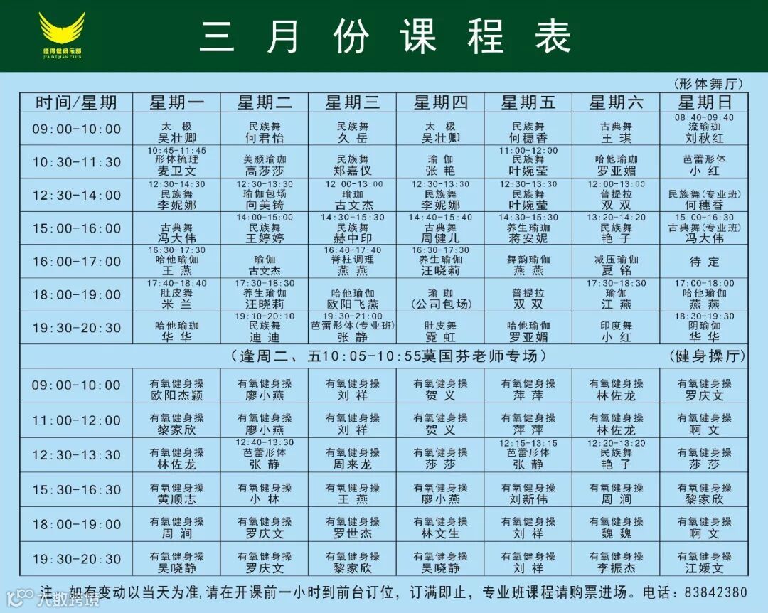 三月份课程表