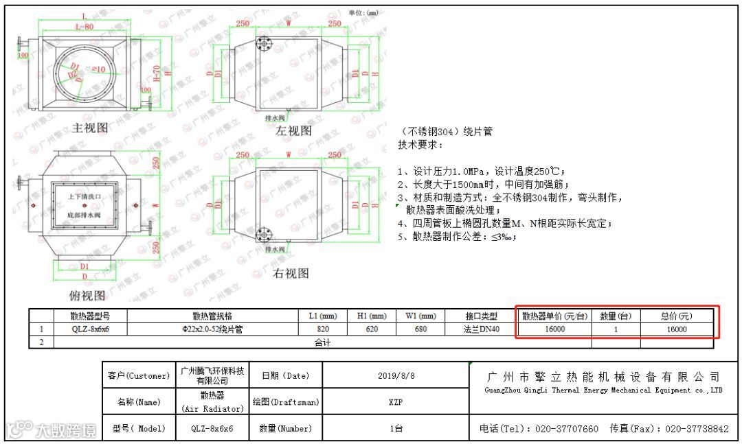 擎立经过十余年的从业经验,为改变选型报价的繁琐,自主研发出空气散热器选型报价软件,极大节省客户等待选型报价的时间,之前至少需要半小时,现在只需要3分钟,3分钟就可以得到经过科学计算的换热器简图及出厂价。
