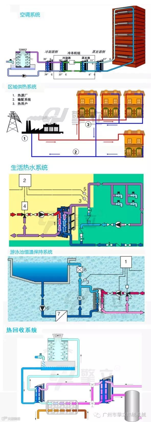 板式换热器是由一系列具有一定波纹形状的金属片叠装而成的一种新型高效换热器。各种板片之间形成薄矩形通道,通过板片进行热量交换。板式换热器是液—液、液—汽进行热交换的理想设备。它具有换热效率高、热损失小、结构紧凑轻巧、占地面积小、安装清洗方便、应用广泛、使用寿命长等特点。