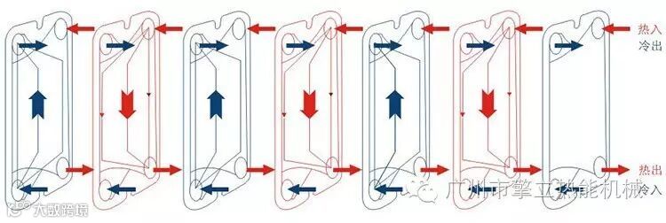 每块板片四角都有开孔,组装成板束后形成流体的分配管和汇集管,冷/热介质热量交换后,从各自的汇集管回流后循环用。