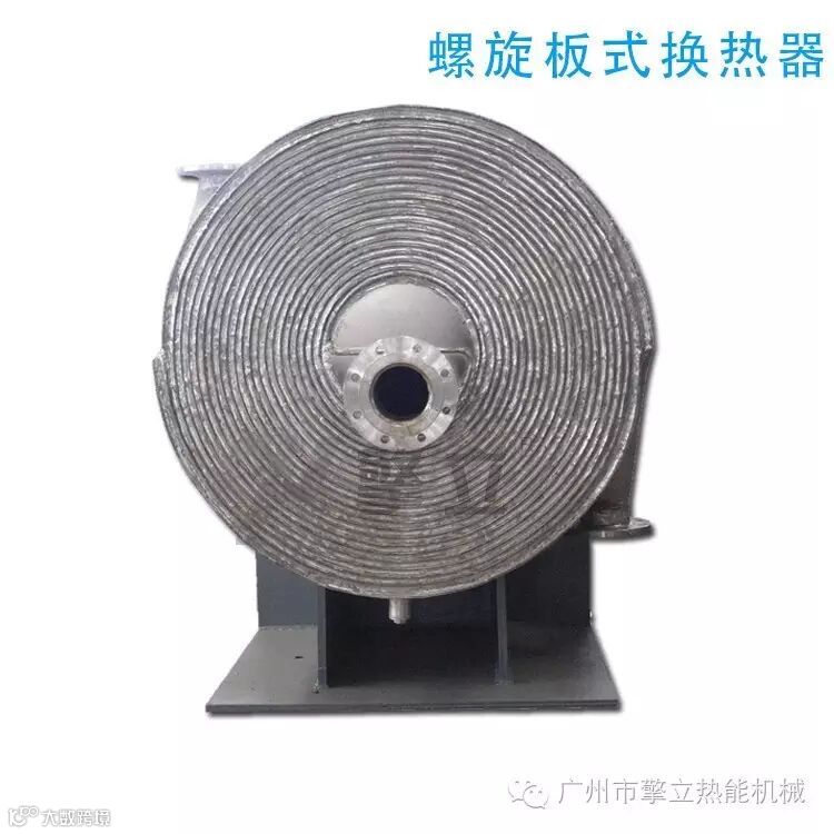 焊接在一块分隔板上并卷制成螺旋状而构成的。换热时,冷、热流体分别进入两条通道,在器内作严格的逆流流动。
