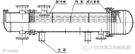 两端的管板,一端不与壳体相连,可自由沿管长方向浮动。当壳体与管束因温度不同而引起热膨胀时,管束连同浮头可在壳体内沿轴向自由伸缩,可完全消除热应力。