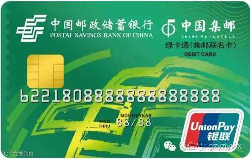 金融功能:集邮联名卡可提供邮储银行标准绿卡通IC卡全部金融产品和服务,包括现金存取、刷卡消费、转账汇款、代理缴费、投资理财、电子银行等。