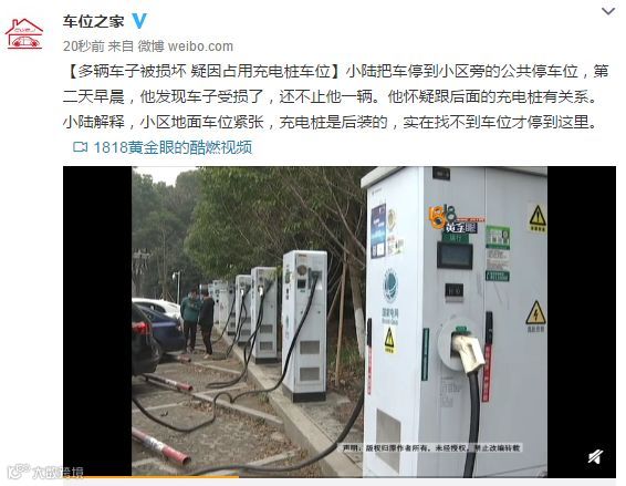 ▐ 小陆把车停到小区旁的公共停车位,第二天早晨,他发现车子受损了,还不止他一辆。他怀疑跟后面的充电桩有关系。小陆解释,小区地面车位紧张,充电桩是后装的,实在找不到车位才停到这里。