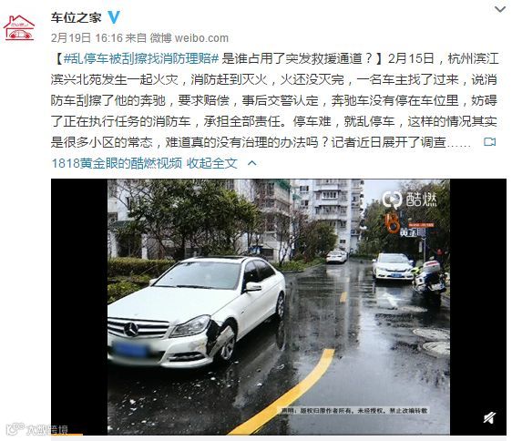 ▐ 2月15日,杭州滨江滨兴北苑发生一起火灾,消防赶到灭火,火还没灭完,一名车主找了过来,说消防车刮擦了他的奔驰,要求赔偿,事后交警认定,奔驰车没有停在车位里,妨碍了正在执行任务的消防车,承担全部责任。停车难,就乱停车,这样的情况其实是很多小区的常态,难道真的没有治理的办法吗?记者近日展开了调查……