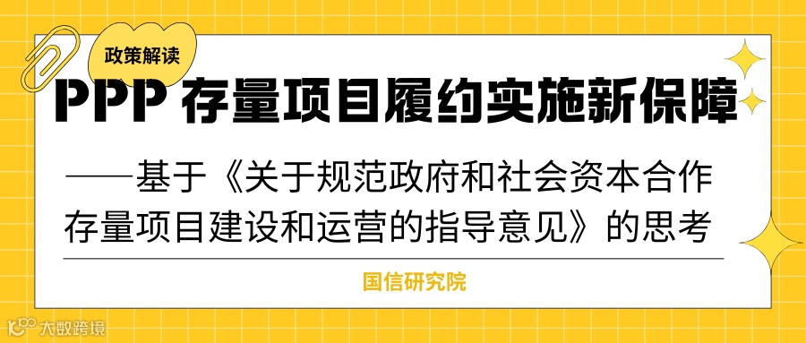 在我国基础设施建设与公共服务供给领域,PPP 模式以其 “政府引导、市场运作” 的优势发挥了重要作用。PPP新机制实施以后,由于新旧机制缺乏不够有效的衔接,不少PPP存量项目由于缺乏清晰准确的政策指引从而导致在履约阶段遇到大量问题,在一定程度上影响了基础设施和公共服务的有效供给。为了切实保障PPP存量各方权益,财政部《关于规范政府和社会资本合作存量项目建设和运营的指导意见》应时而生,为 PPP存量项目履约提供了清晰的指引 。